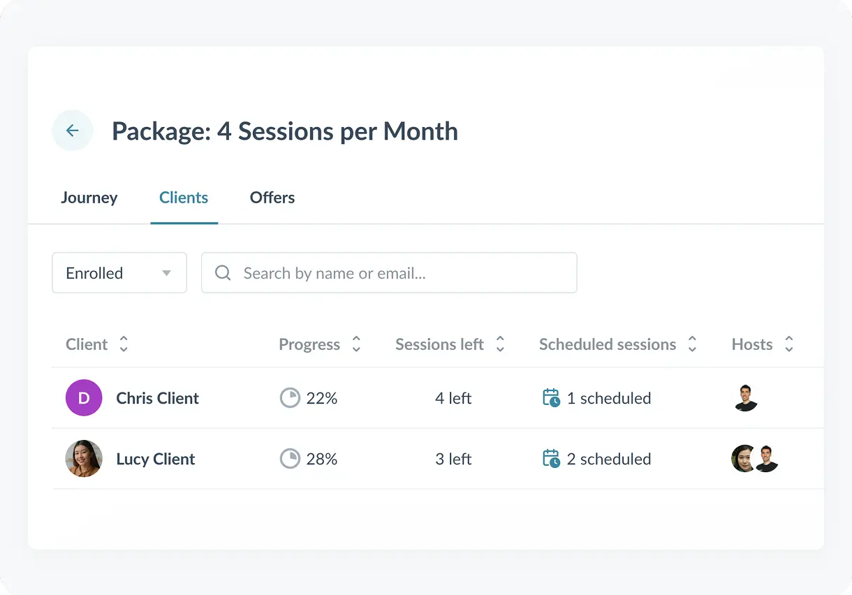 Provide a professional all-in-one branded experience to clients. Manage them all in one place as a team, track progress and help clients reach their goals.