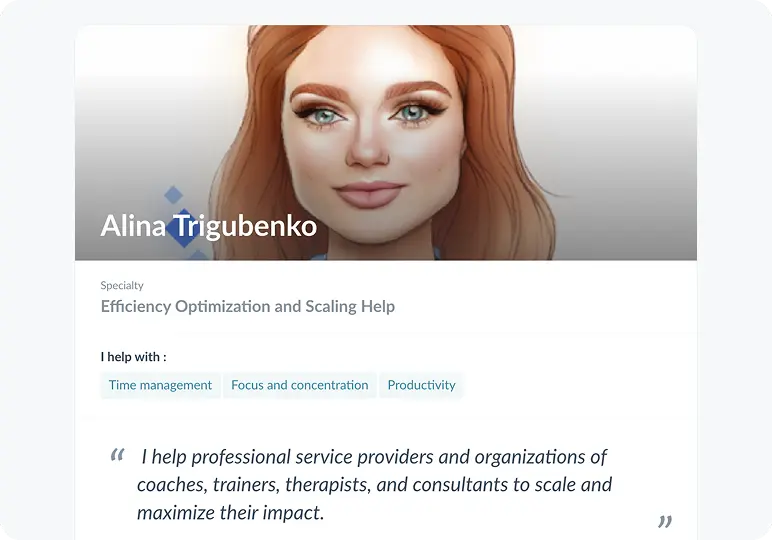Profi is suitable for all types of coaching companies, including business, life, career, health, executive, spiritual, and relationship coaching. Our platform is customizable to meet the unique needs of your coaching practice.