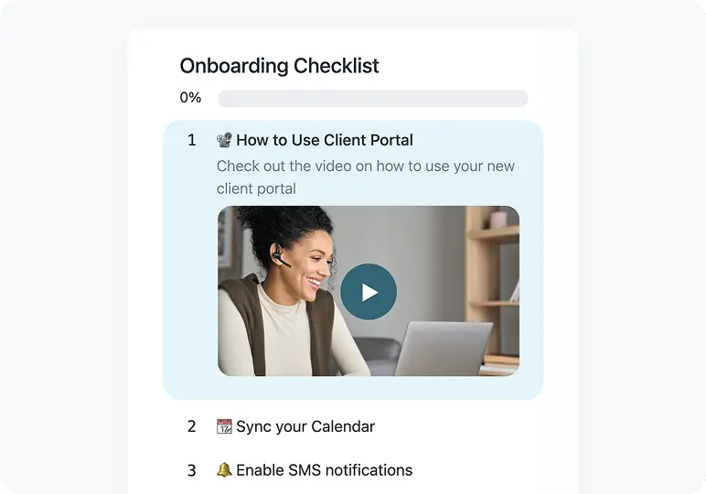 Eliminate the need to onboard each new client manually by having them complete simple account setup steps.